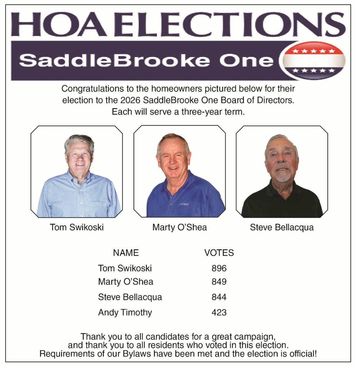Congratulations to Tom Swikoski, Marty O'Shea, and Steve Bellacqua for being elected to the Board of Directors! Their three-year term begins January 1, 2026.
